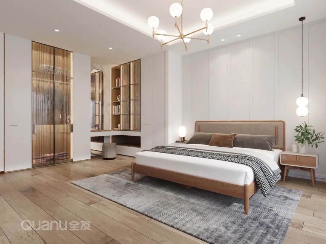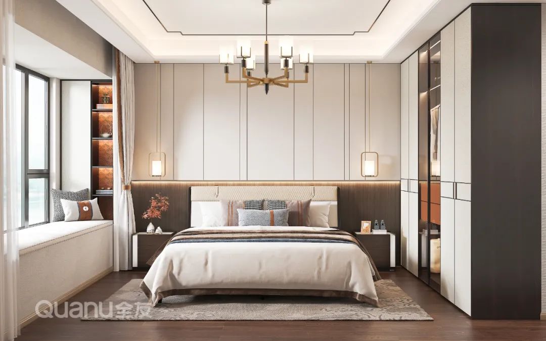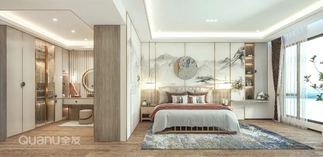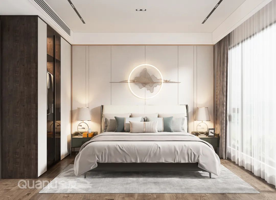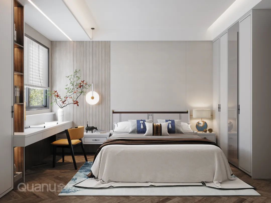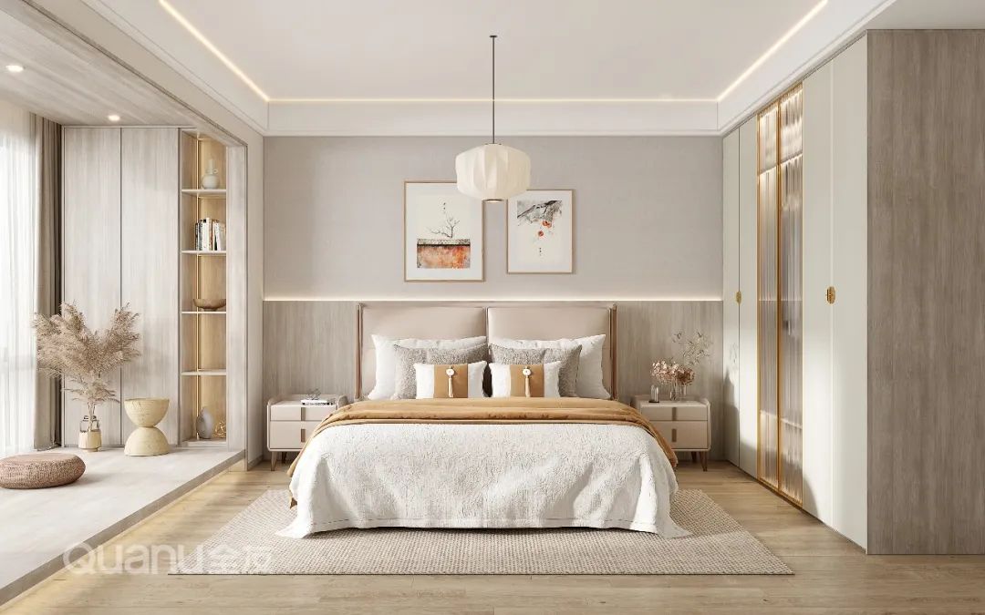 Tôn trọng cốt lõi "giảm thiểu sự phức tạp và đơn giản hóa" là bản chất của phong cách truyền thống Trung Quốc, đồng thời kết hợp thiết kế “ứng dụng” phù hợp hơn với cuộc sống của con người hiện đại. Với kỹ thuật đối xứng và đường nét mượt mà, thiết kế phòng ngủ dưới đây cân bằng không gian với nét đẹp gần gũi thiên nhiên, màu sắc đơn giản và trang nhã. Nghỉ ngơi trong một phòng ngủ như vậy, bạn có thể cảm nhận được văn hóa phương Đông một cách rõ ràng nhất, vừa giải tỏa cơ thể, vừa thư giãn tâm trí trước nhịp sống tấp nập của thành phố.