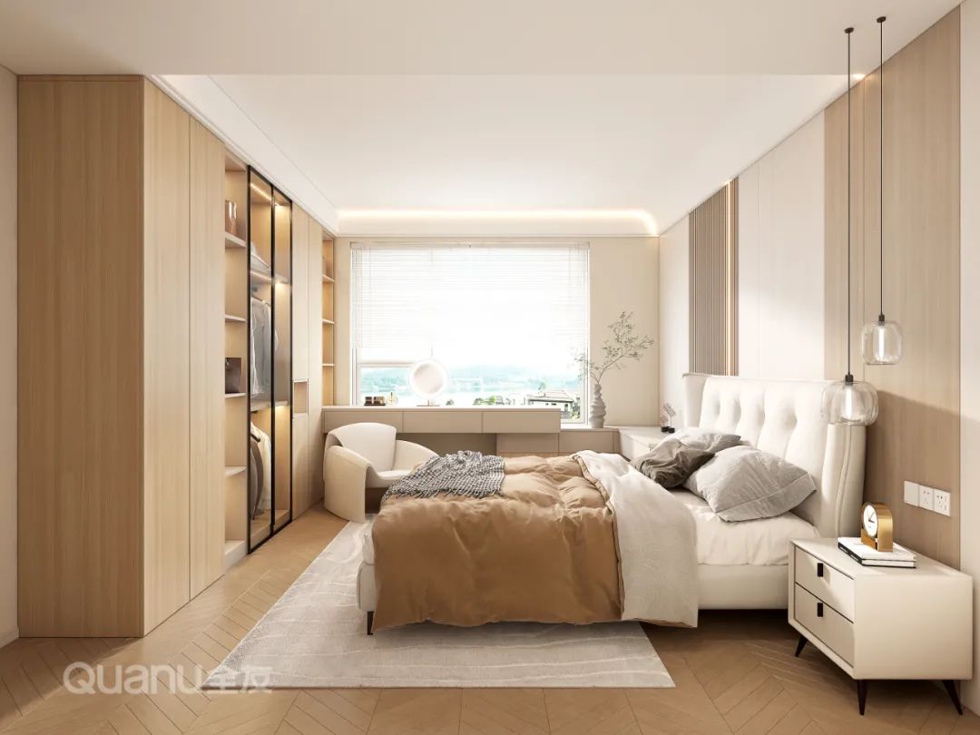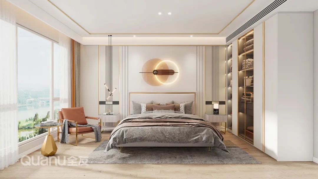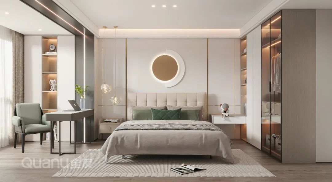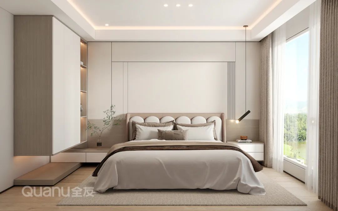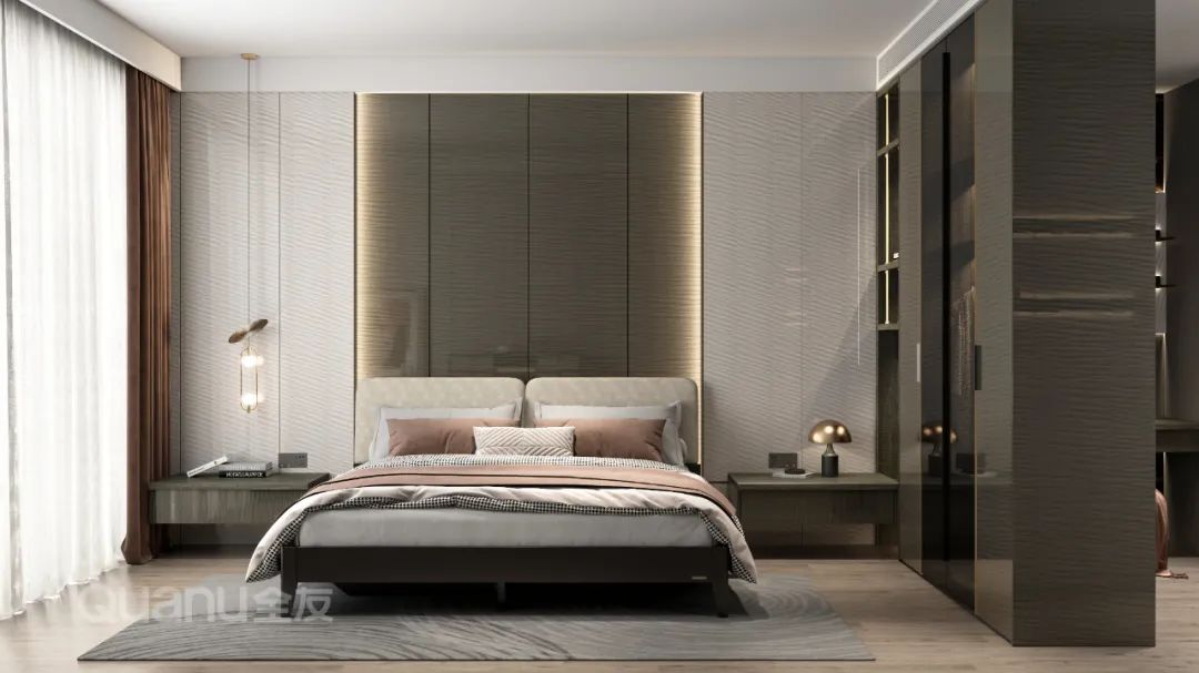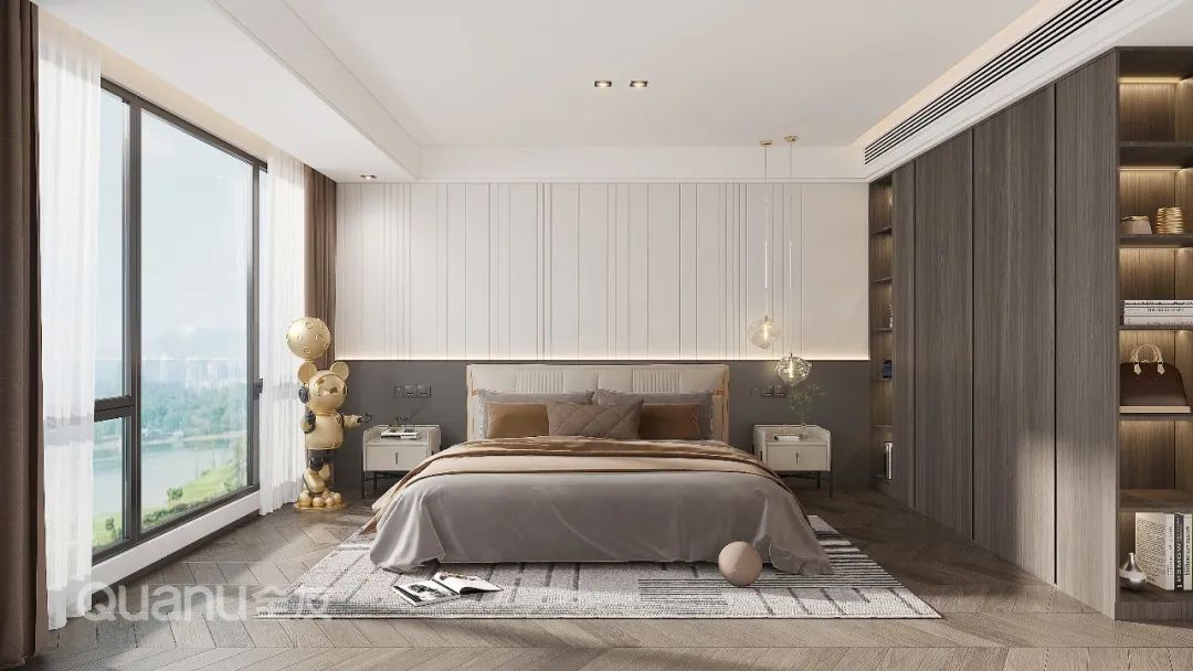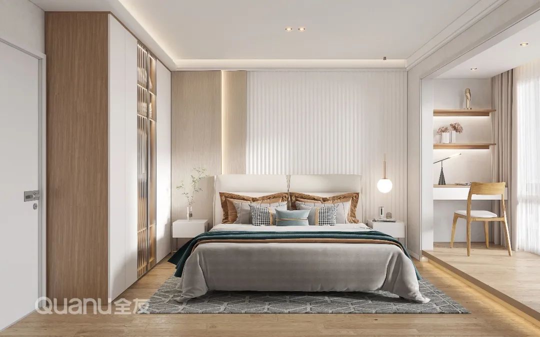 Tôn trọng cốt lõi "giảm thiểu sự phức tạp và đơn giản hóa" là bản chất của phong cách truyền thống Trung Quốc, đồng thời kết hợp thiết kế “ứng dụng” phù hợp hơn với cuộc sống của con người hiện đại. Với kỹ thuật đối xứng và đường nét mượt mà, thiết kế phòng ngủ dưới đây cân bằng không gian với nét đẹp gần gũi thiên nhiên, màu sắc đơn giản và trang nhã. Nghỉ ngơi trong một phòng ngủ như vậy, bạn có thể cảm nhận được văn hóa phương Đông một cách rõ ràng nhất, vừa giải tỏa cơ thể, vừa thư giãn tâm trí trước nhịp sống tấp nập của thành phố.