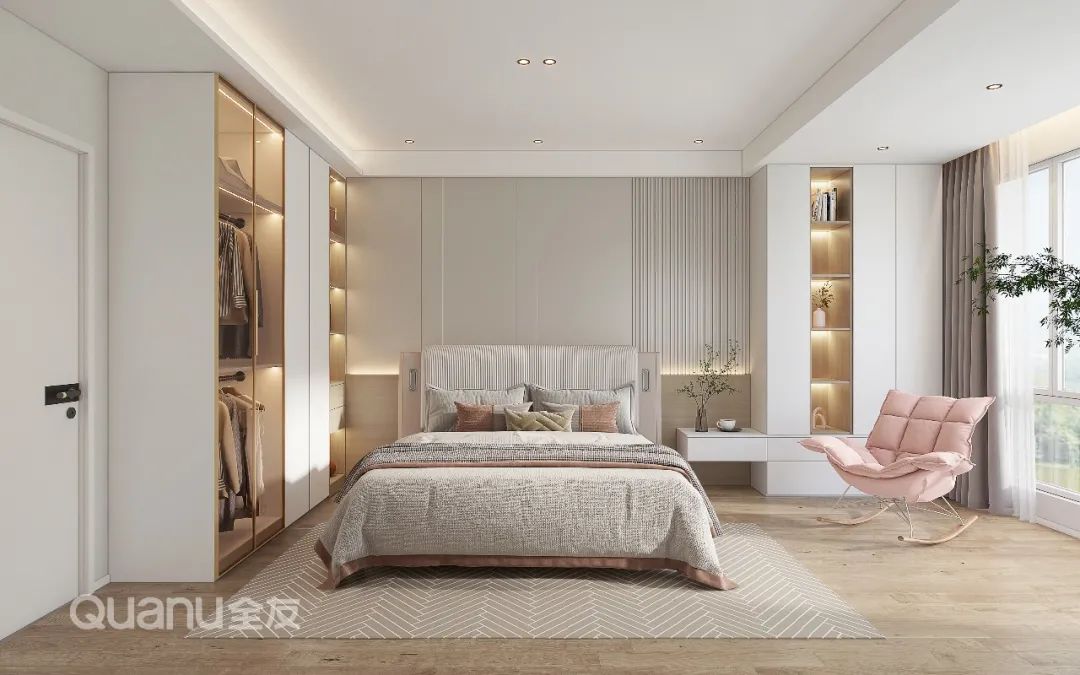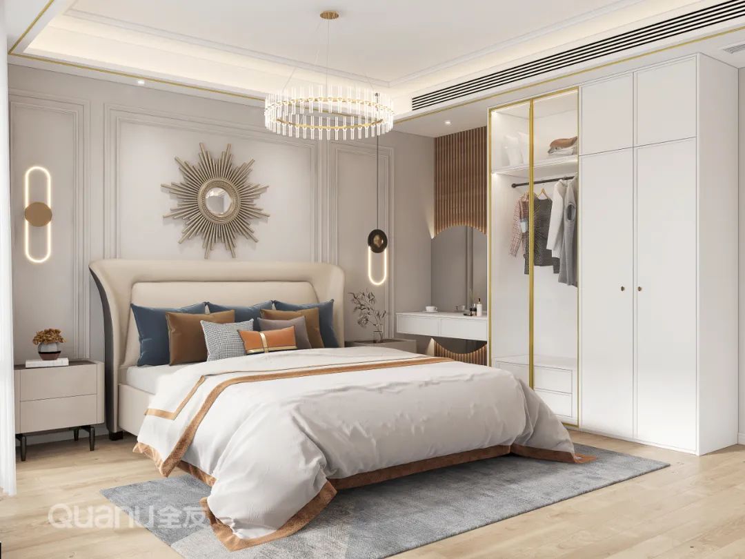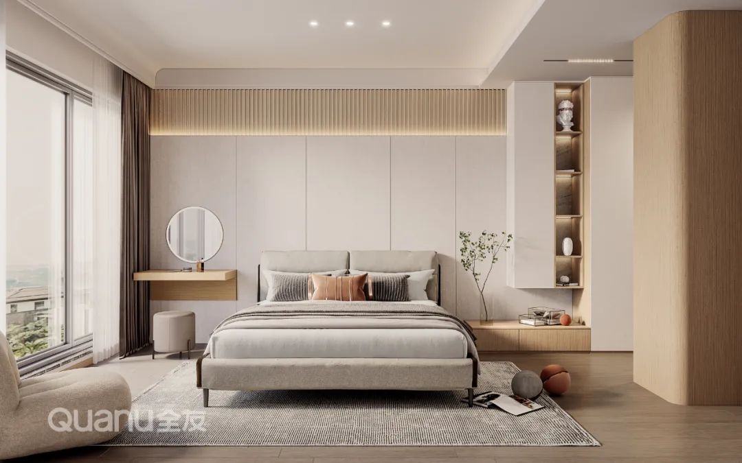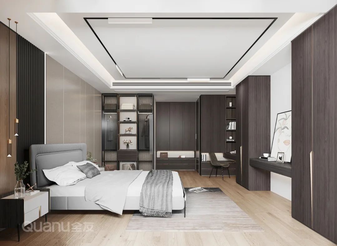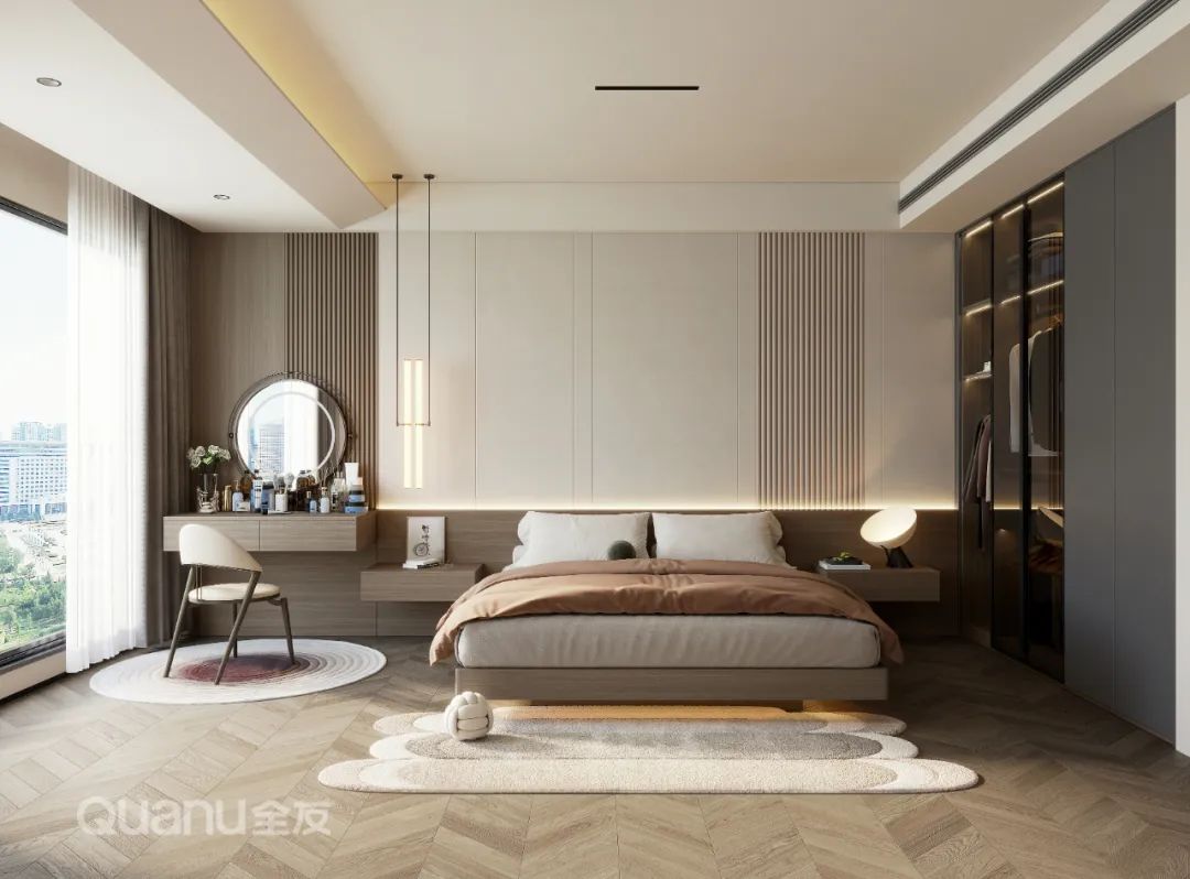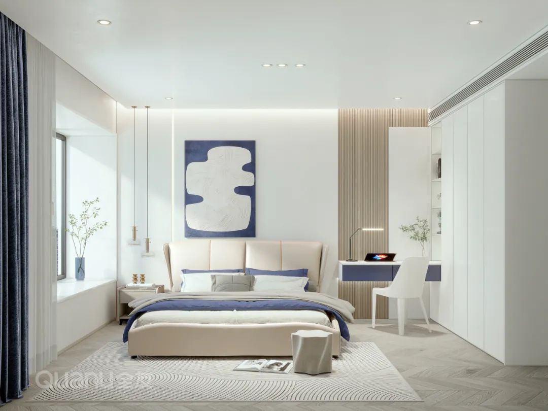 Tôn trọng cốt lõi "giảm thiểu sự phức tạp và đơn giản hóa" là bản chất của phong cách truyền thống Trung Quốc, đồng thời kết hợp thiết kế “ứng dụng” phù hợp hơn với cuộc sống của con người hiện đại. Với kỹ thuật đối xứng và đường nét mượt mà, thiết kế phòng ngủ dưới đây cân bằng không gian với nét đẹp gần gũi thiên nhiên, màu sắc đơn giản và trang nhã. Nghỉ ngơi trong một phòng ngủ như vậy, bạn có thể cảm nhận được văn hóa phương Đông một cách rõ ràng nhất, vừa giải tỏa cơ thể, vừa thư giãn tâm trí trước nhịp sống tấp nập của thành phố.
