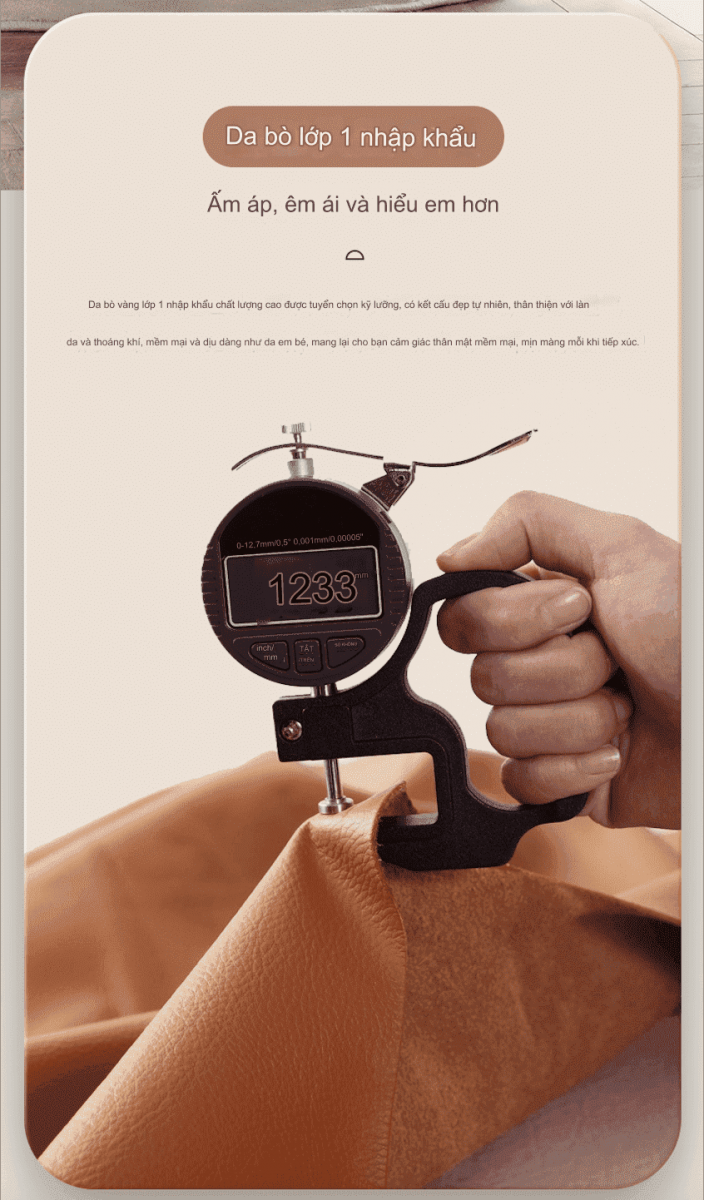 Bề mặt tiếp xúc ghế thư giãn được làm bằng da bò thật lớp 1 nhập khẩu được tuyển chọn kỹ lưỡng, kết cấu đẹp tự nhiên, mềm mại, êm ái, bền màu và chịu mài mòn cao.