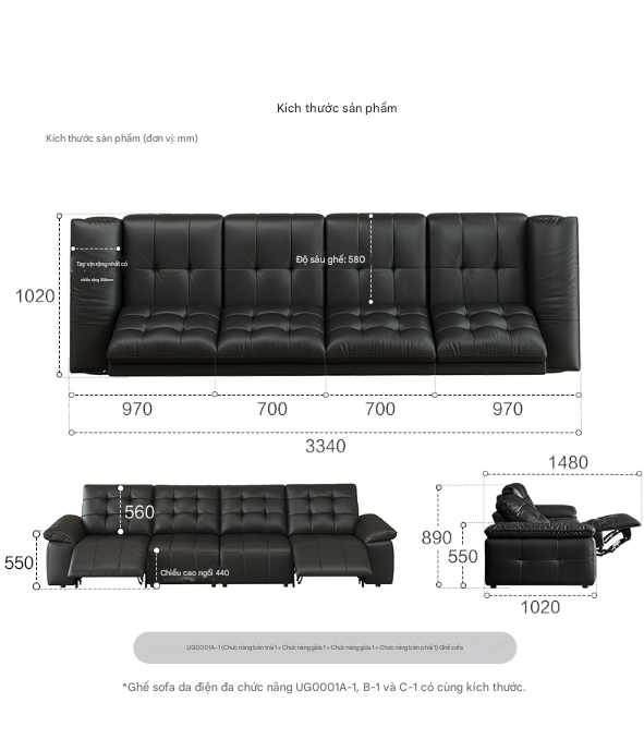 • Chiều dài: 3400 mm/ 3090 mm/ 2700 mm/ 2550 mm