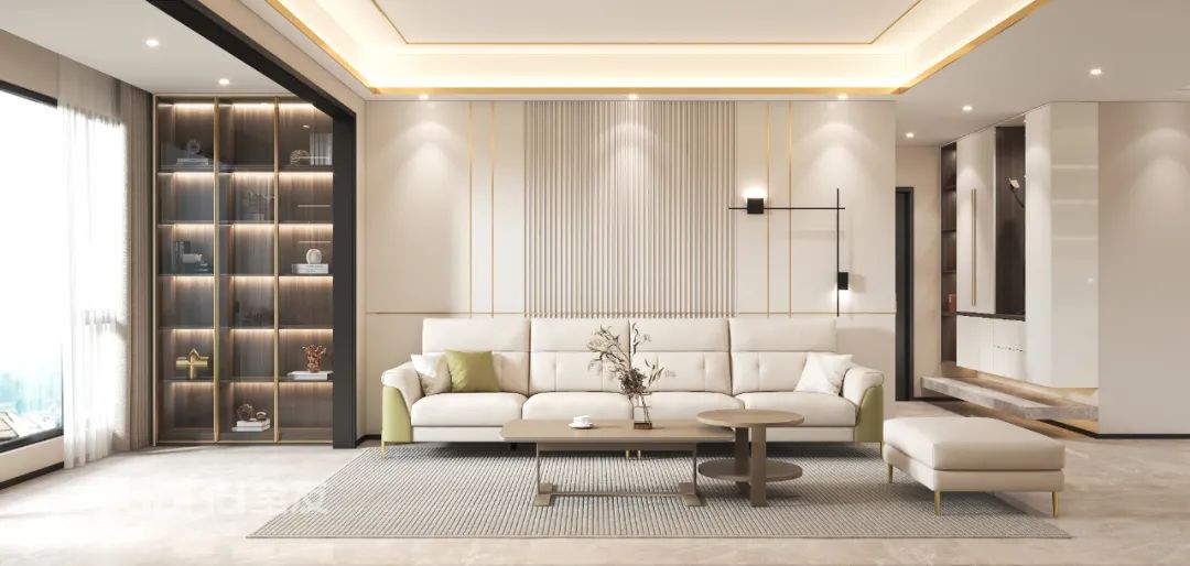 3.Ban công phòng khách được thiết kế mở, tích hợp với tủ đồ tạo thành khu vực trưng bày sưu tập