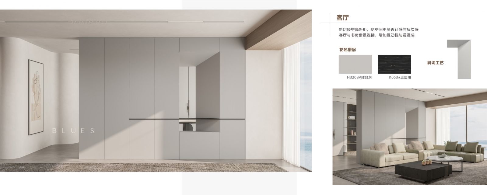 Sử dụng khối chữ nhật tối giản, khéo léo kết hợp lại tạo thành chữ H. Tạo 1 khoảng trống giữa tủ vừa đáp ứng nhiều nhu cầu lưu trữ, vừa tăng tính thẩm mỹ cho không gian.